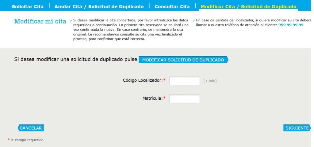 Modificar cita ITV Loja